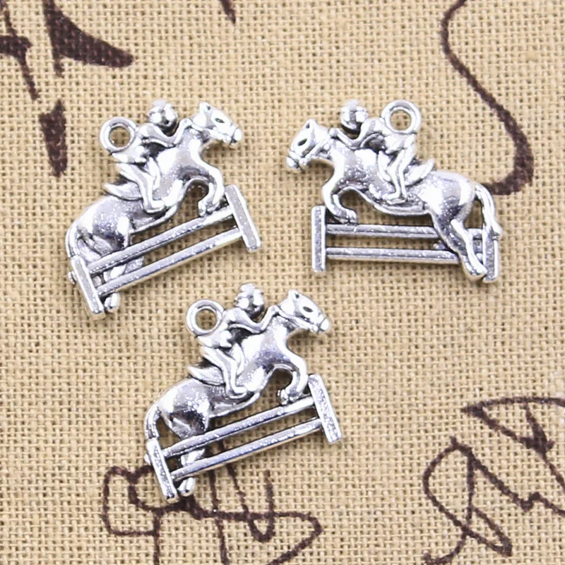 Name: 10 Uds. De dijes de caballos de carrera, 17x23mm, colgantes de Color plata antigua, DIY, accesorios hechos a mano, joyería tibetana