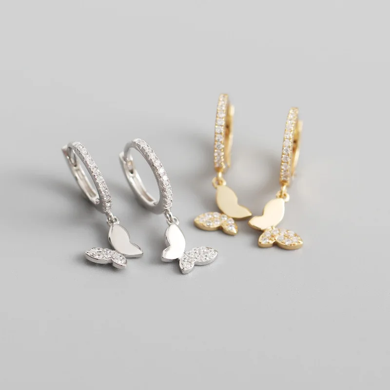 Name: Pendientes de aro de mariposa para mujer, de Plata de Ley 925, dorado plateado brillante, accesorios de joyería para fiesta, regalo