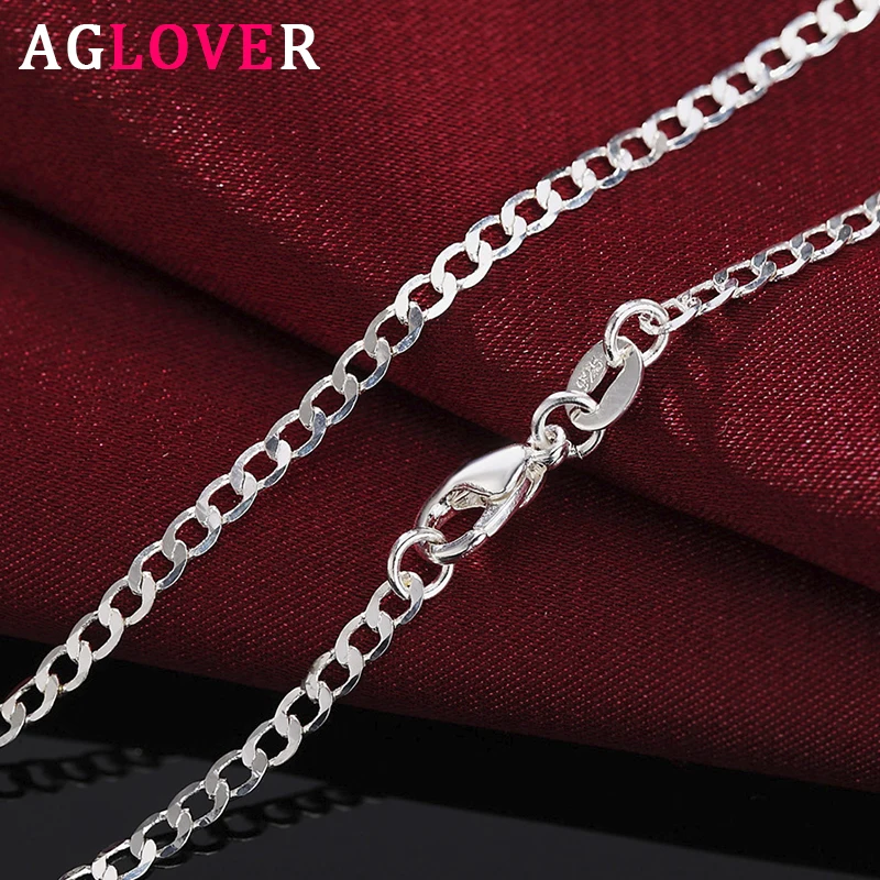Name: AGLOVER nueva plata de ley 925/16/18/20/22/24/26/28/30 pulgadas 2mm de lado collar de cadena para hombre mujer moda de regalo de la joyería de la boda