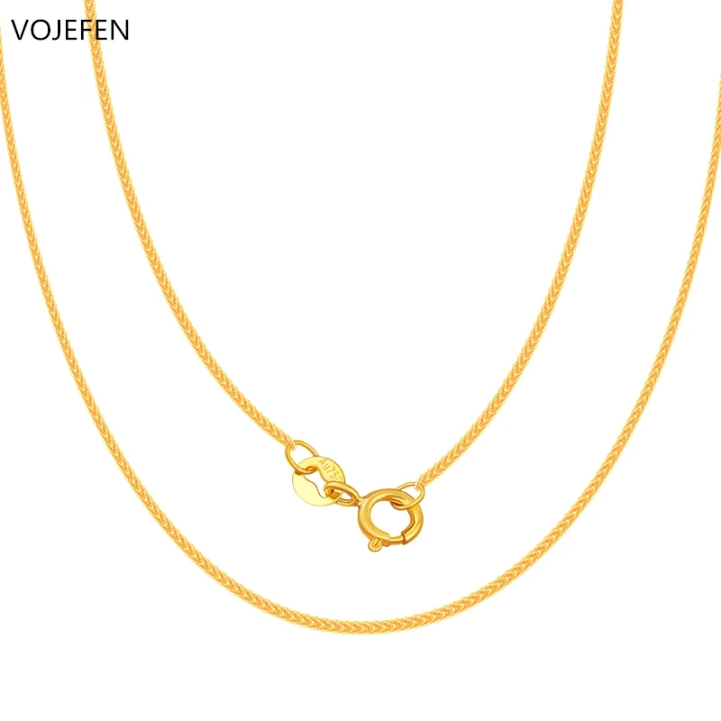 Name: Vojepen-Cadena de eslabones de oro de 18k para mujer, cadena de trigo/Cadena de cuerda/caja, Gargantilla, regalo de joyería fina