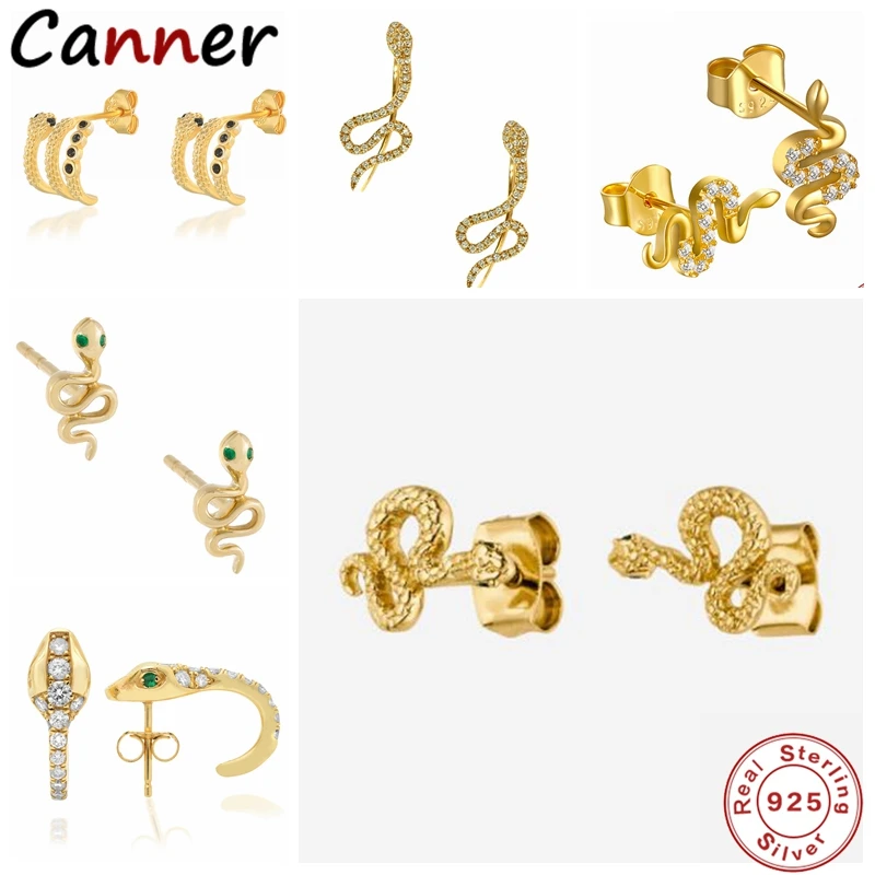 Name: Canner-pendientes tipo botón de plata fina S925 para mujer, aretes de serpiente de forma pequeña, regalo diario, joyería fina